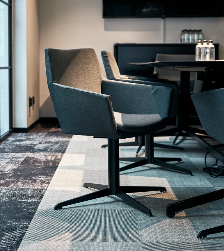 Vi leverte også bord og stoler til møterommene. I det største konferanserommet, ofte brukt til opplæring, ble det valgt en løsning med 12 mindre konferansebord som både kan spres ut i et klassisk forelesnings-oppsett og settes sammen til en stor formasjon. Fleksibelt og veldig brukervennlig.