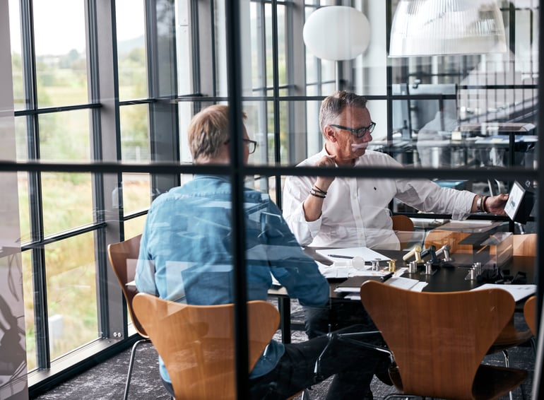 – Design og kvalitet er viktig for oss, sier Hans Bergström. Og det gjelder alt fra våre produkter og hvordan vi presenterer oss til byggets arkitektur og møblene vi jobber på.