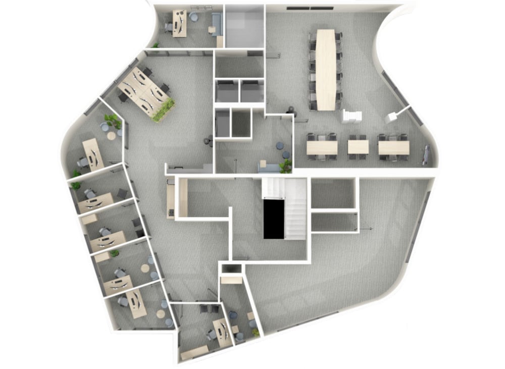 Familiehjelp AS flyttet inn i et nybygg uten mulighet til å befare lokalene før planleggingen startet. Ved hjelp av plantegninger og en arbeidsplassanalyse ble kontordesignet visualiserte med 3D-tegninger. Lokalet er innredet med toner i blått, som harmoniserer godt med de beige tonene og eikemøblene.
