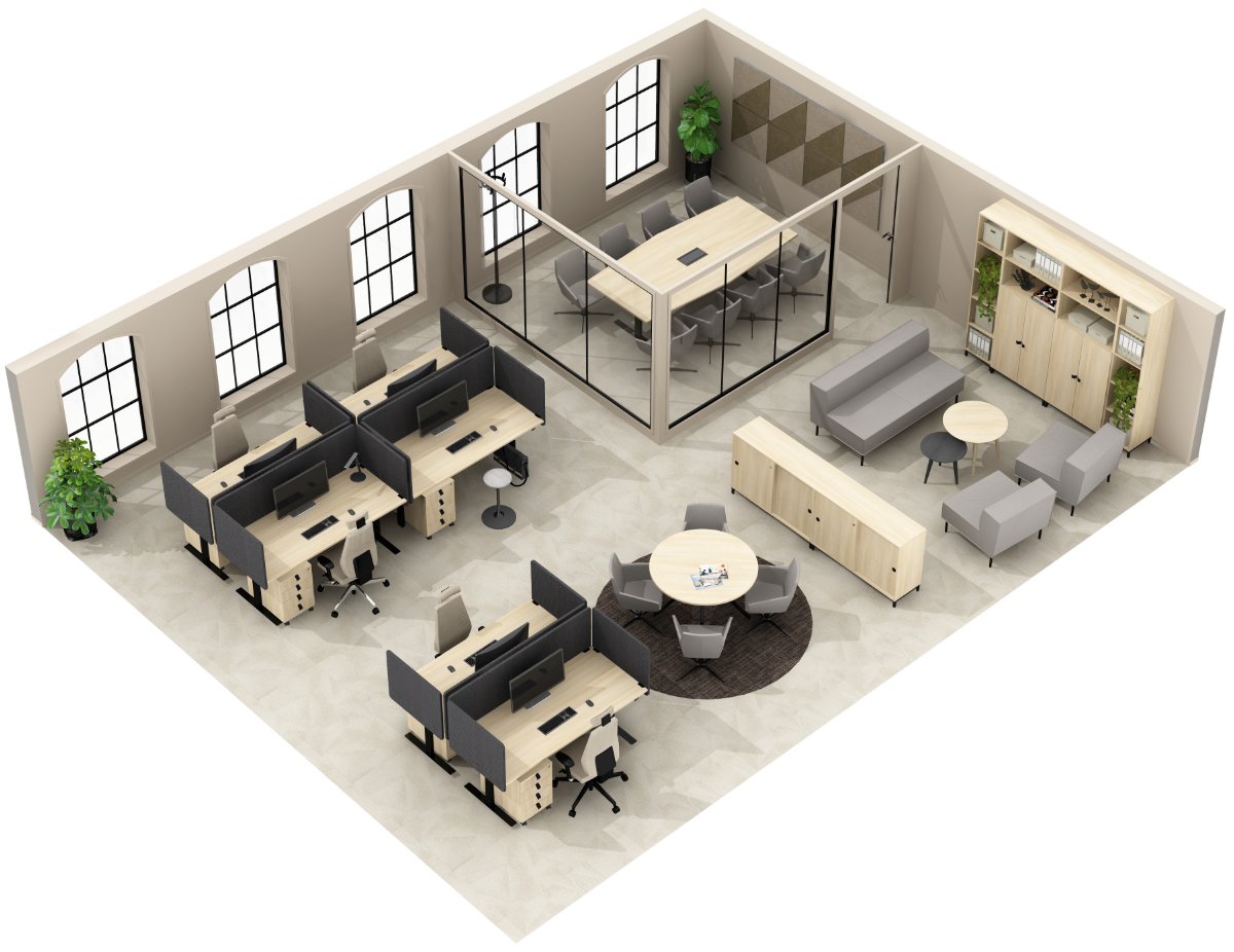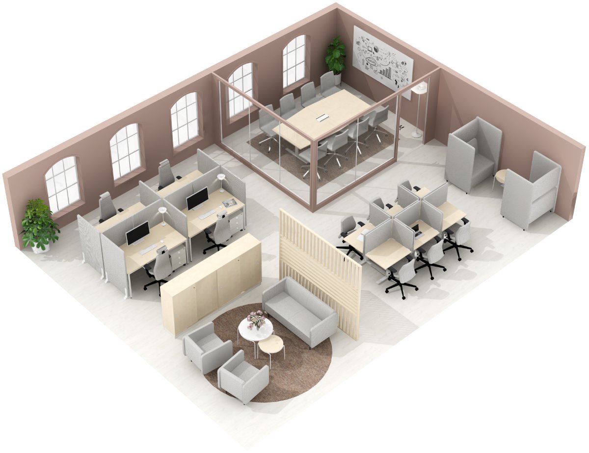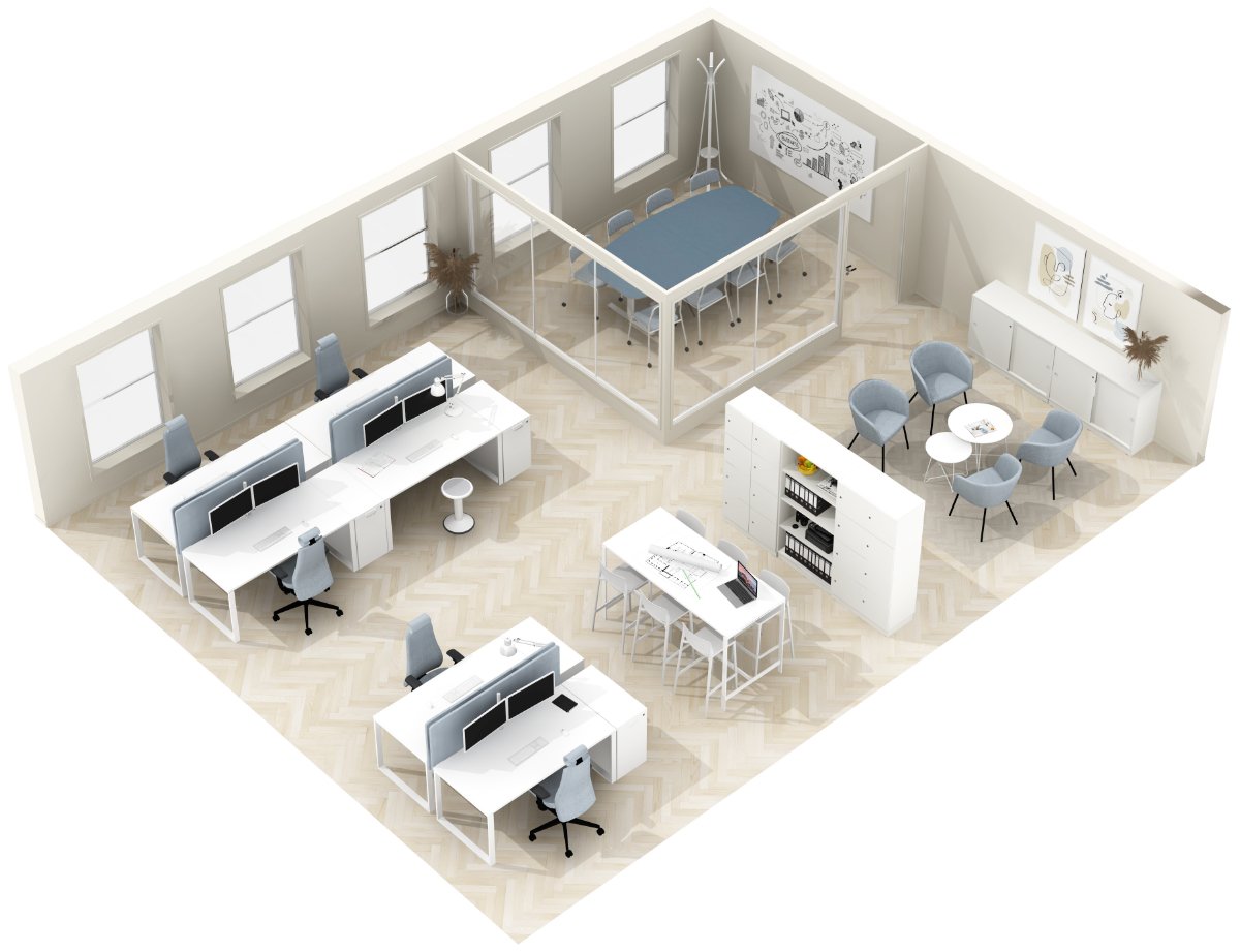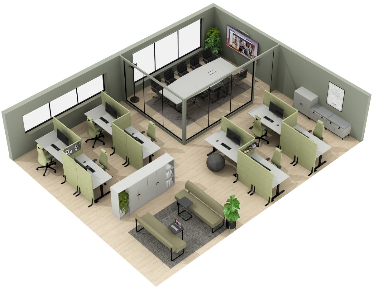 Velg mellom 5 ulike innredningsløsninger til ditt nye kontor